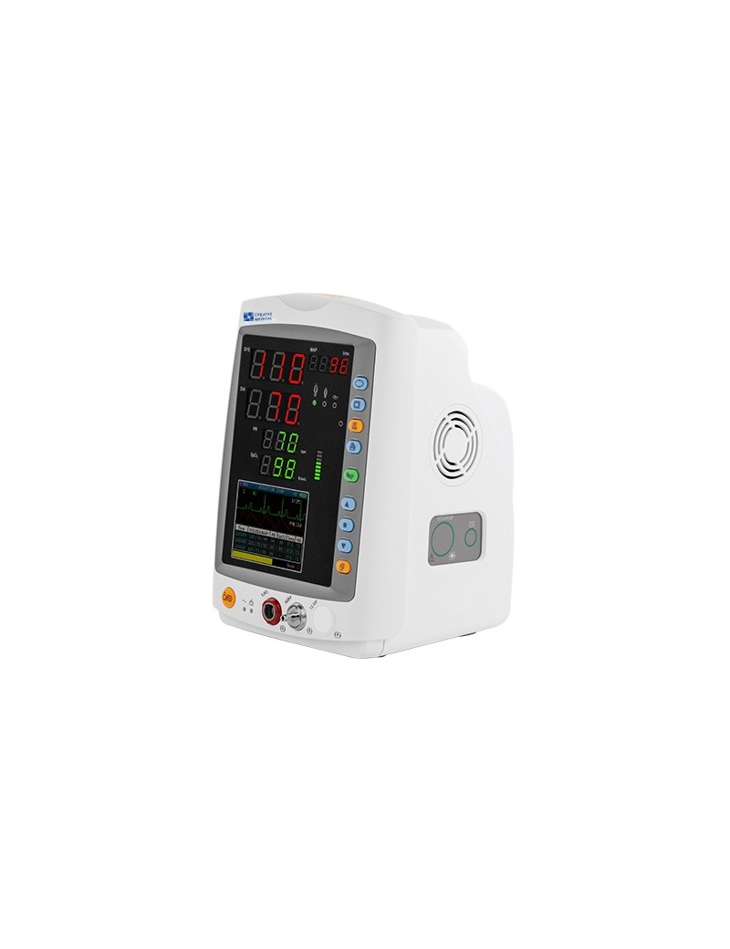 Monitor para paciente con alimentación mediante batería o corriente eléctrica, registra las mediciones de las funciones fisiológicas como presión arterial no invasiva (NIBP) y saturación arterial de oxigeno (SPO2). Las señales se convierten en datos digitales que se visualizan en la pantalla y son analizadas para revelar las condiciones de alarma