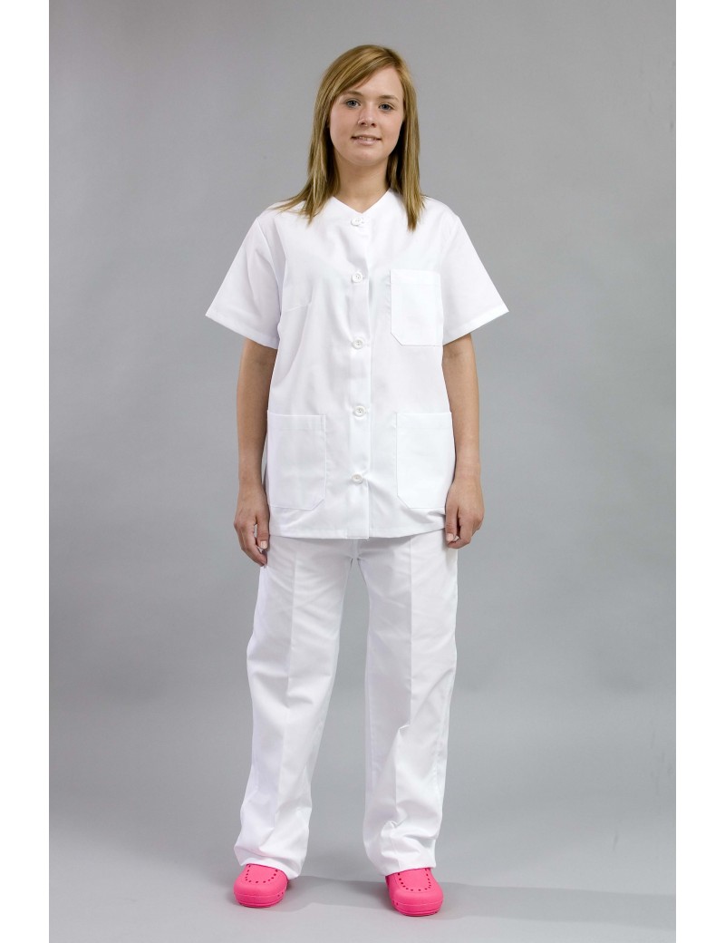Pantalon y chaqueta con botones. Disponible en blanco o verde.