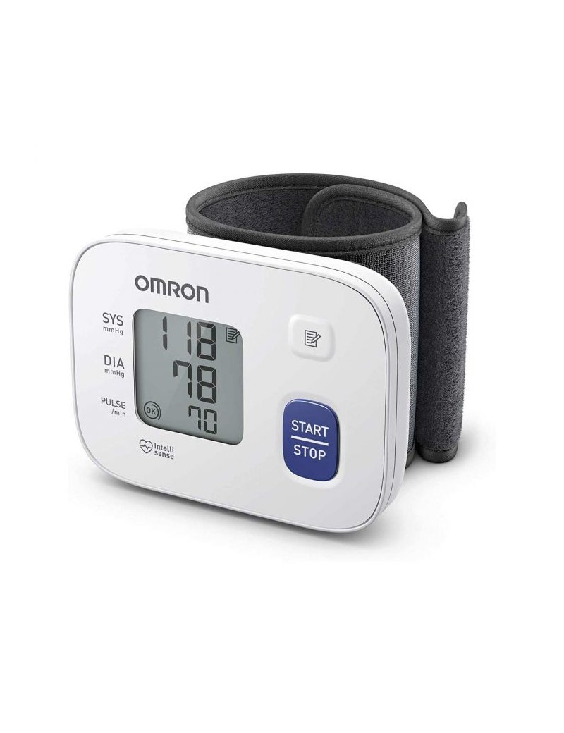 ensiómetro digital Omron para toma de la presión arterial en la muñeca, modelo RS2. Con tan solo pulsar un botón, el tensiómetro mide su presión arterial y pulso mostrando una lectura clara de los resultados. Ideal para lecturas rápidas en casa o en el trabajo. Este tensiómetro utiliza el método oscilométrico de medición de la presión arterial, esto siginifica que la unidad detecta las vibraciones del pulso de la arteria de la muñeca y convierte las oscilaciones creadas por el mismo en una lectura digital.